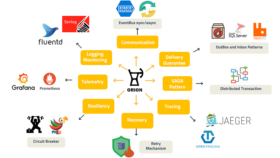 Orion adı verilen mikroservis altyapısı tüm inter-Vision ürünlerine; servisler arası haberleşme (inter-service communication), dağıtık işlem yönetimi (distributed transaction management), mesaj dağıtım garantisi (delivery guarantee),
