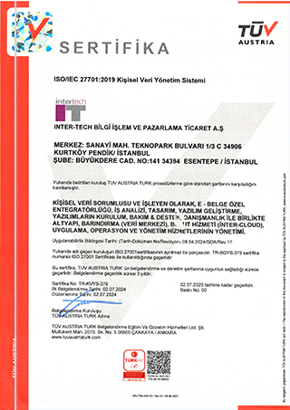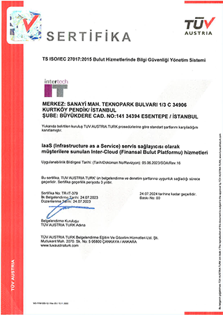 Bulut Hizmetlerinde Bilgi Güvenliği Yönetim Sistemi Sertifikası ve Kişisel Veri Yönetim Sistemi Sertifikası olmak üzere 5 sertifikamız bulunmaktadır.